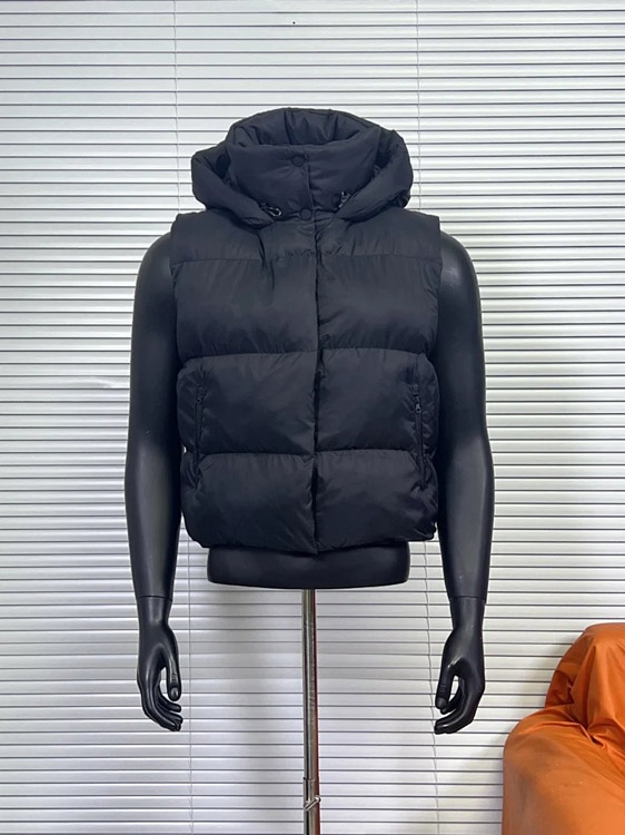 ALO Solid Color Hooded High-Neck Down Vest-5056