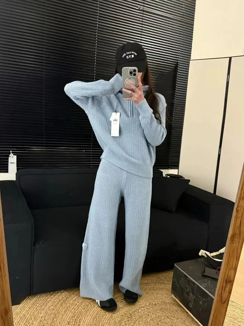 ALO waffle knit sweater loose straight pants temperament fashion suit (3 styles)-2574