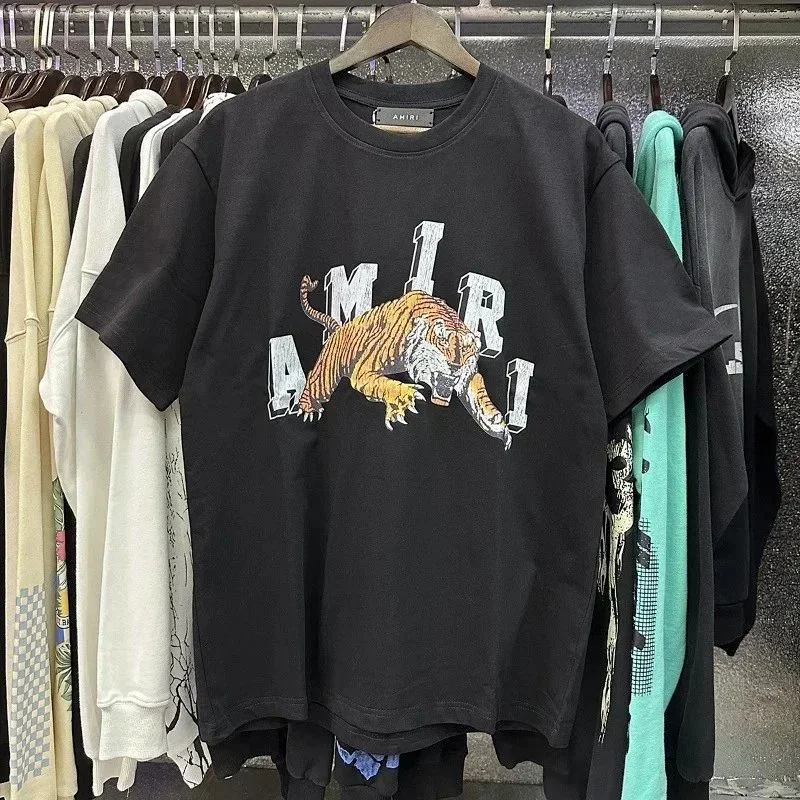 AMIRI Tiger Print Round Neck Short Sleeve T-Shirt-2777