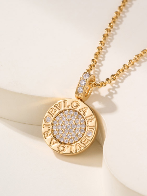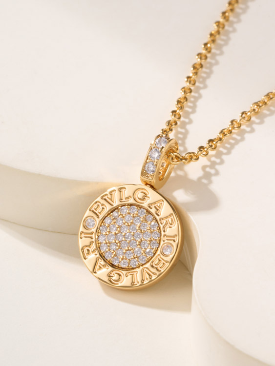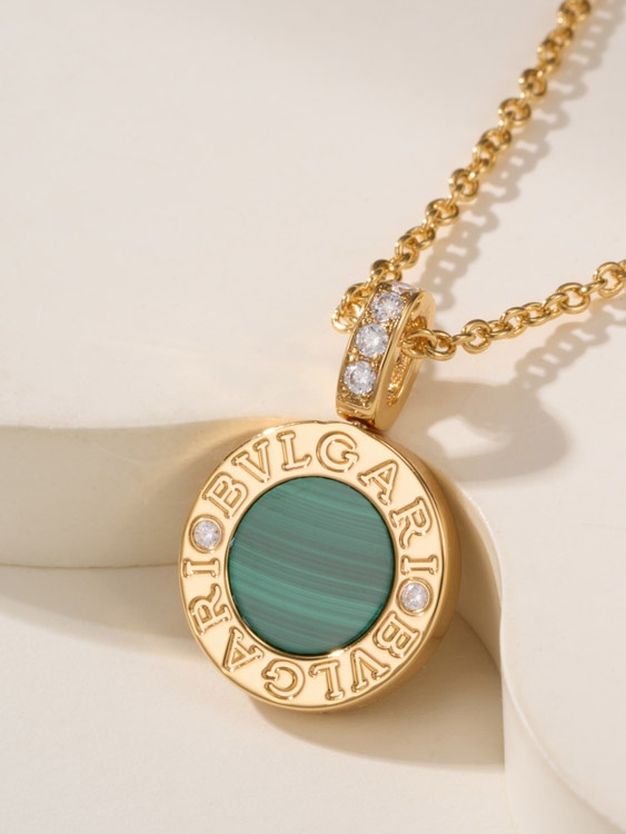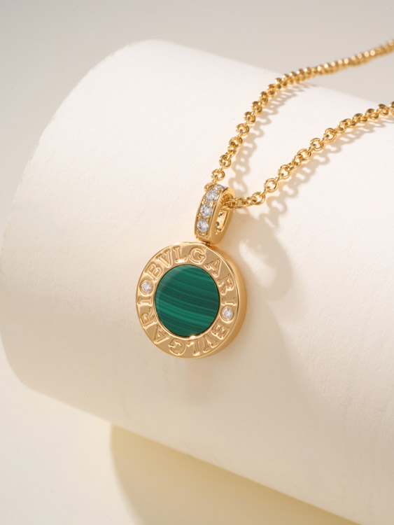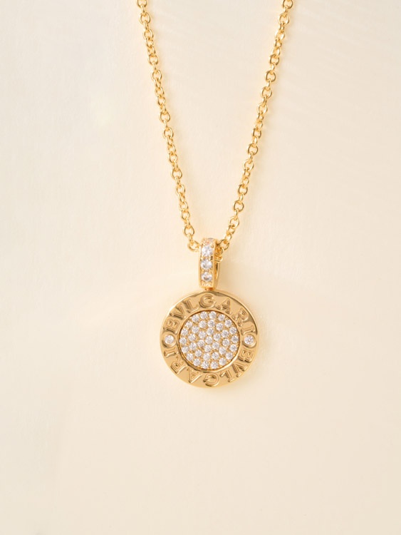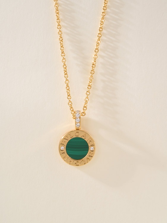 Home > Bulgari double-sided green letter engraving vintage diamond coin necklace-4000