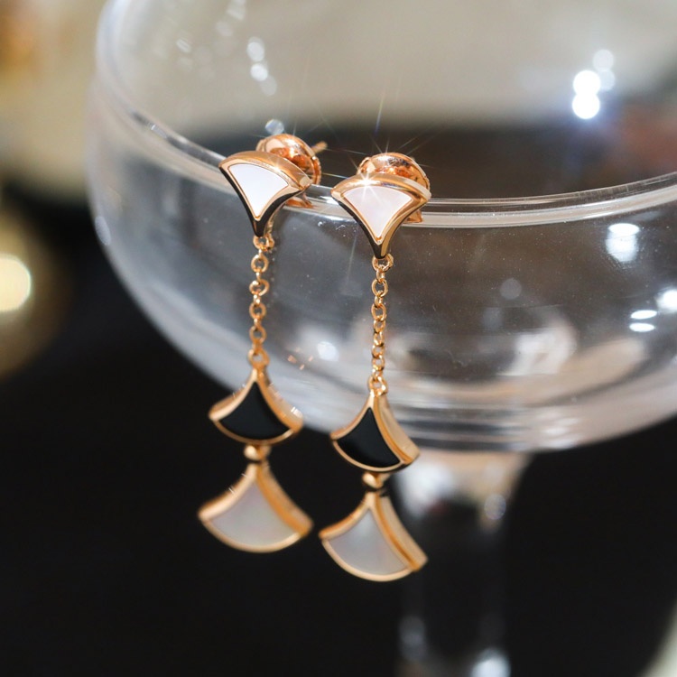 Bulgari fan-shaped white mother-of-pearl diamond earrings black agate long earrings-3861