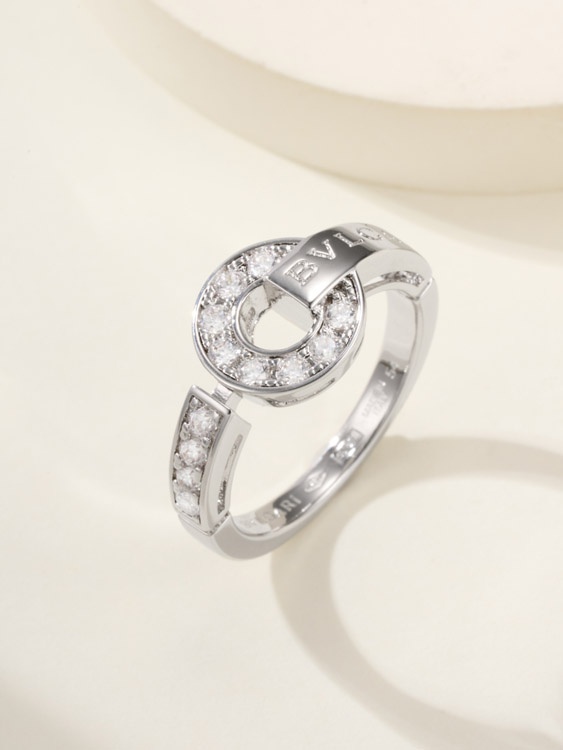 Bulgari Pave Diamond Letter Ring-3586