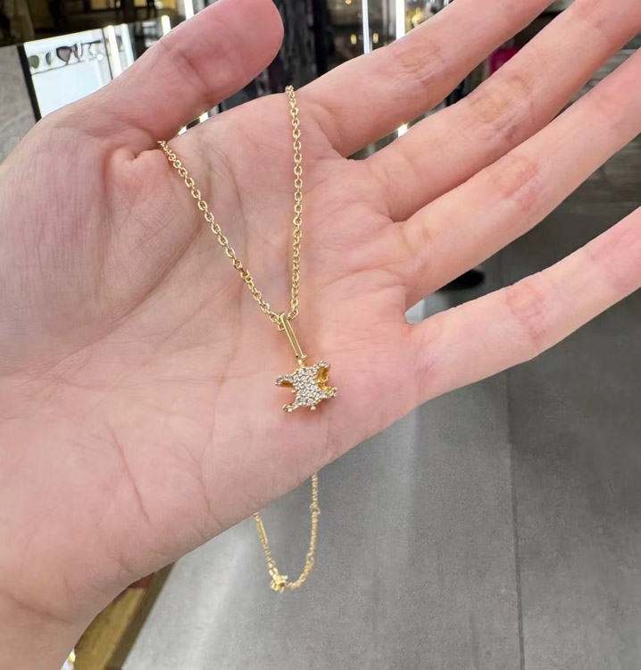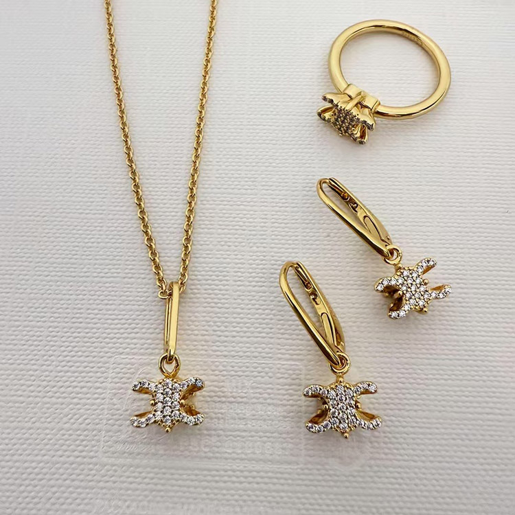 Celine Gold Arc de Triomphe Full Diamond Logo Necklace Earrings-3736
