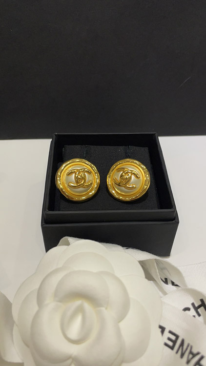 Home > Celine pearl round button gold backpack buckle double C earrings-3899