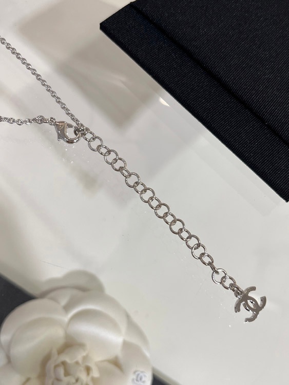 Chanel blue heart silver full diamond double C perfume bottle necklace-3750