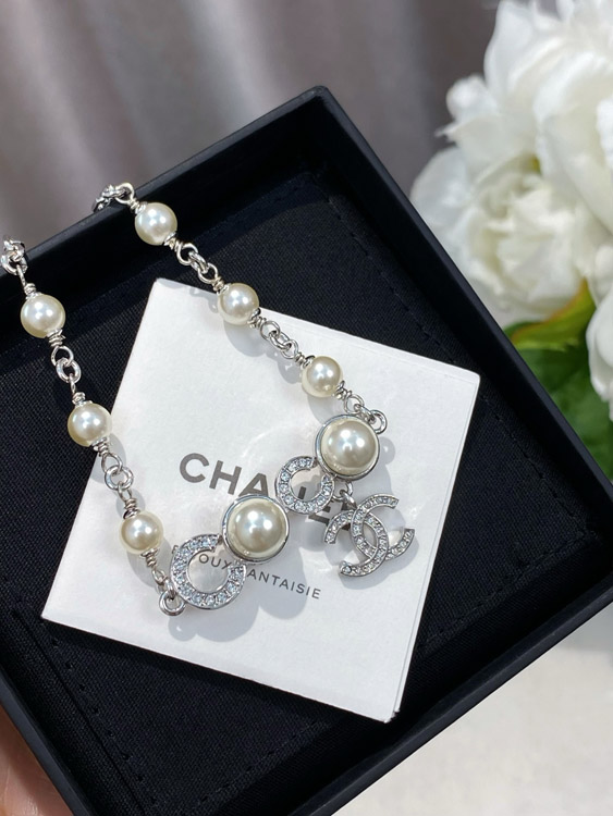 Chanel Double C Rhinestone Pearl Bracelet-3834