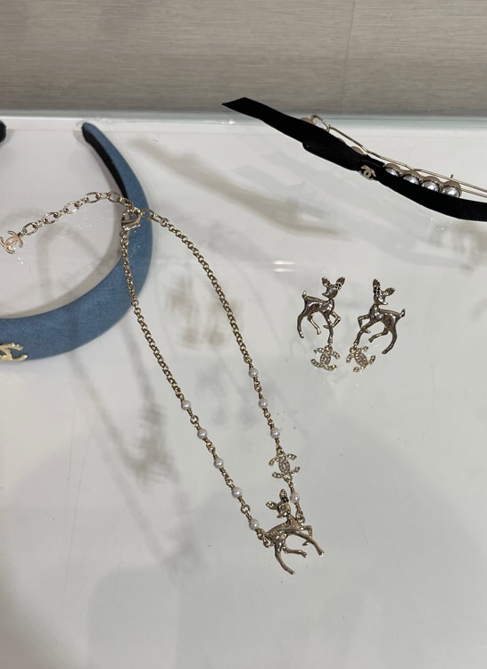 Chanel Golden Deer Full Diamond Double C Pearl Necklace-3749