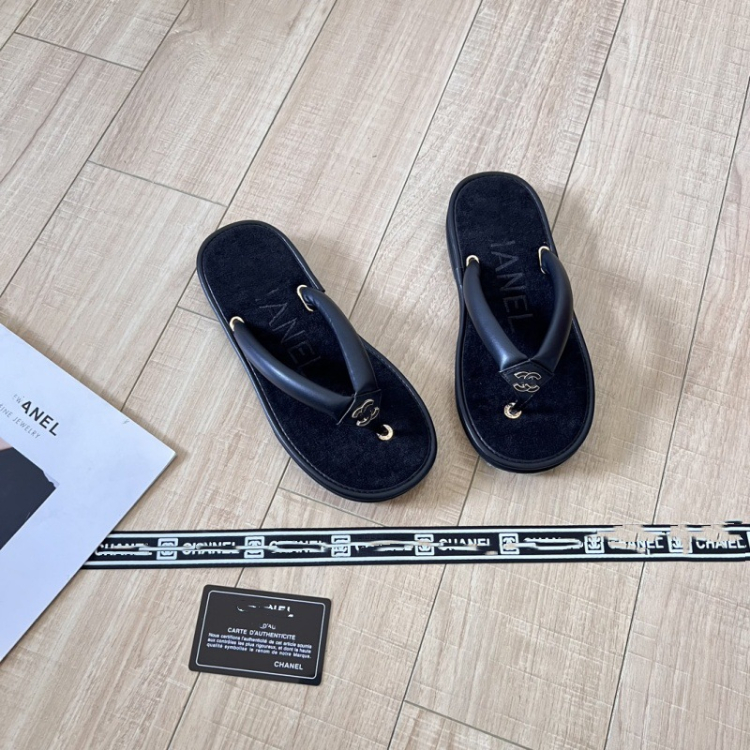Chanel new terry cloth flat sandals with metal buckle-5710