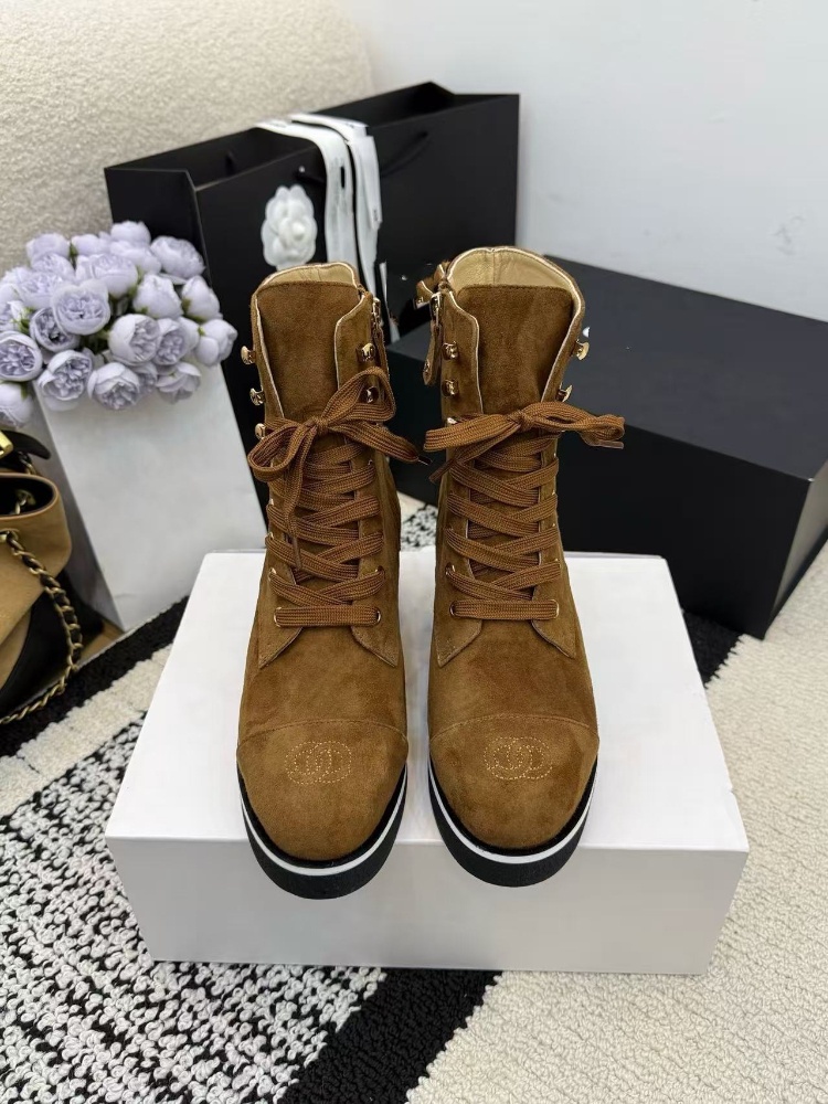 Chanel platform color-block lace-up ankle boots-5774
