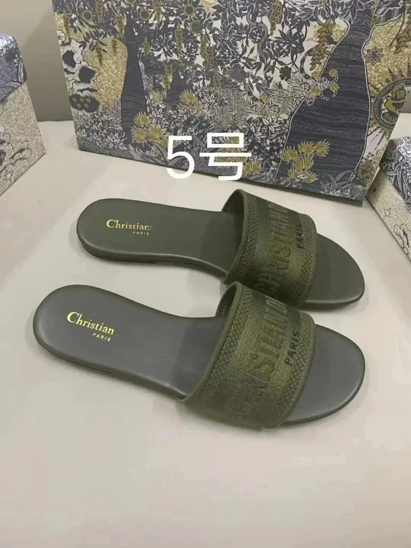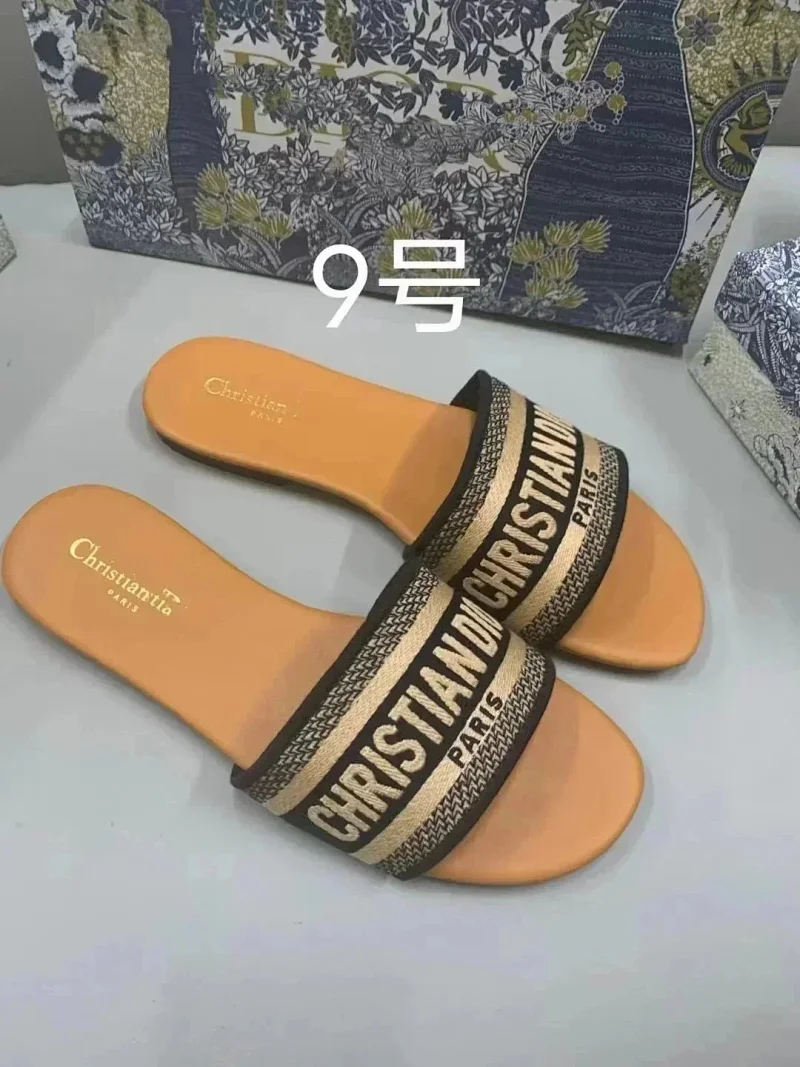 Dior 2025 new summer genuine leather letter embroidered outerwear women's slippers-2336