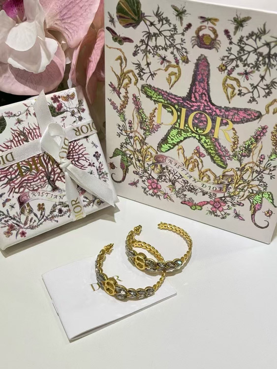 Dior Gold Horse Eye Crystal Wheat Ear Chain Hoop Earrings-3703