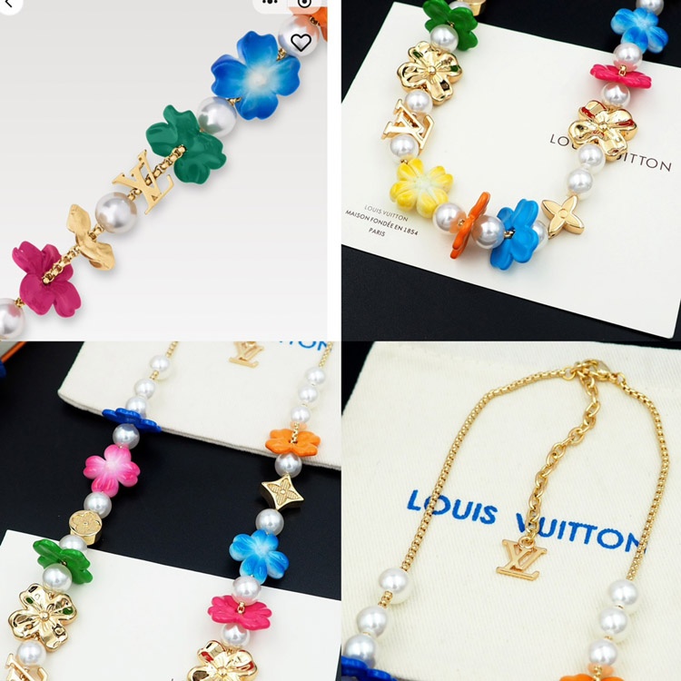 Home > Louis Vuitton LV adjustable metal chain floral and glass beads floral necklace-3972