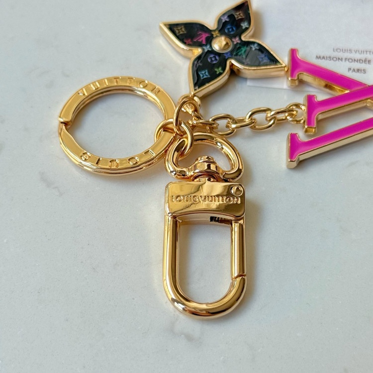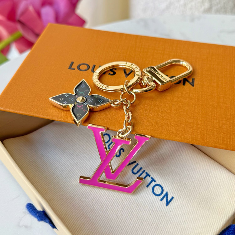 Louis Vuitton LV black tricolor old flower pink letter keychain-3761