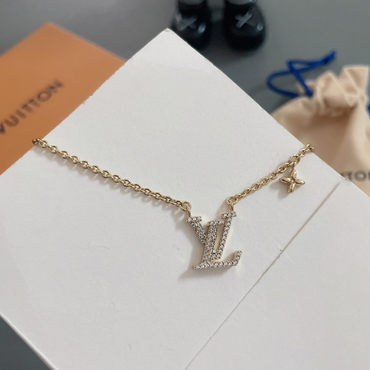 Louis Vuitton LV full diamond letter necklace-3955