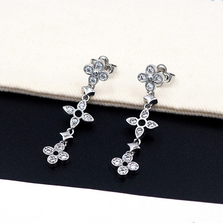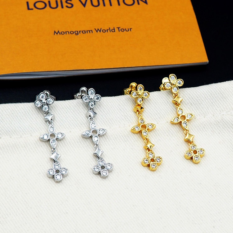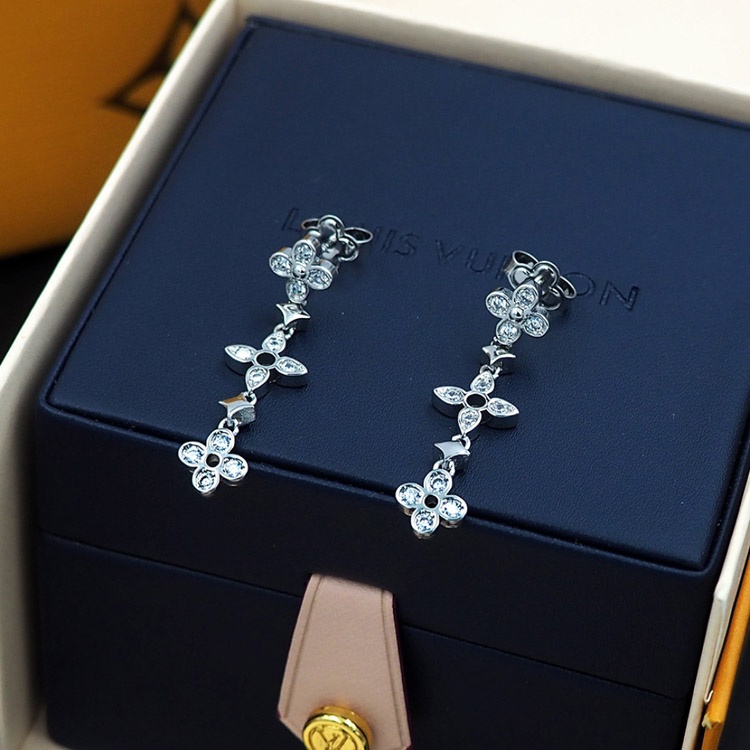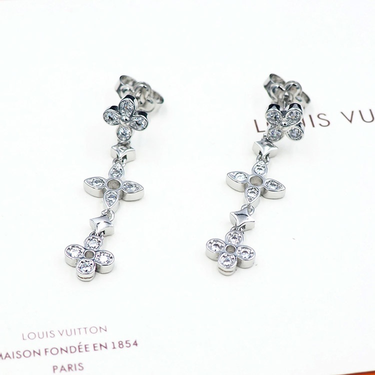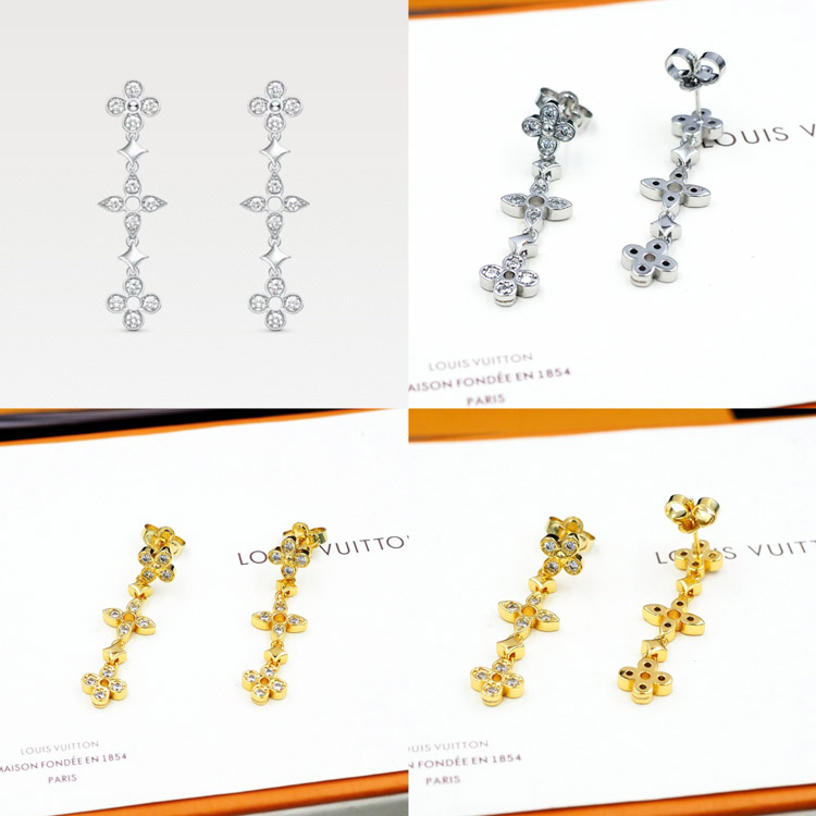 Louis Vuitton LV lace hollow inlaid zircon floral pattern earrings-3534