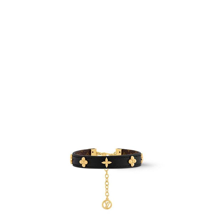 Home > Louis Vuitton LV letter flower black leather gold rivet chain fine leather bracelet bracelet-3660