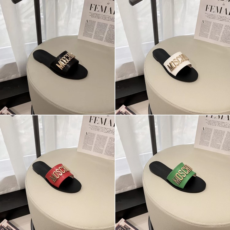 Moschino colorful leather round-toe flat sandals-5657