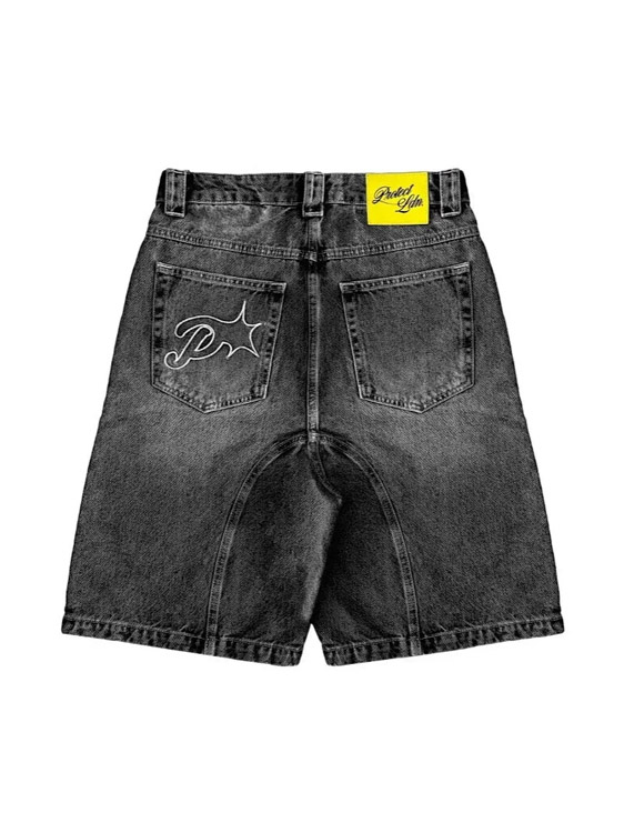 Home > Protect Embroidered Loose Harajuku Washed Denim Shorts-4926