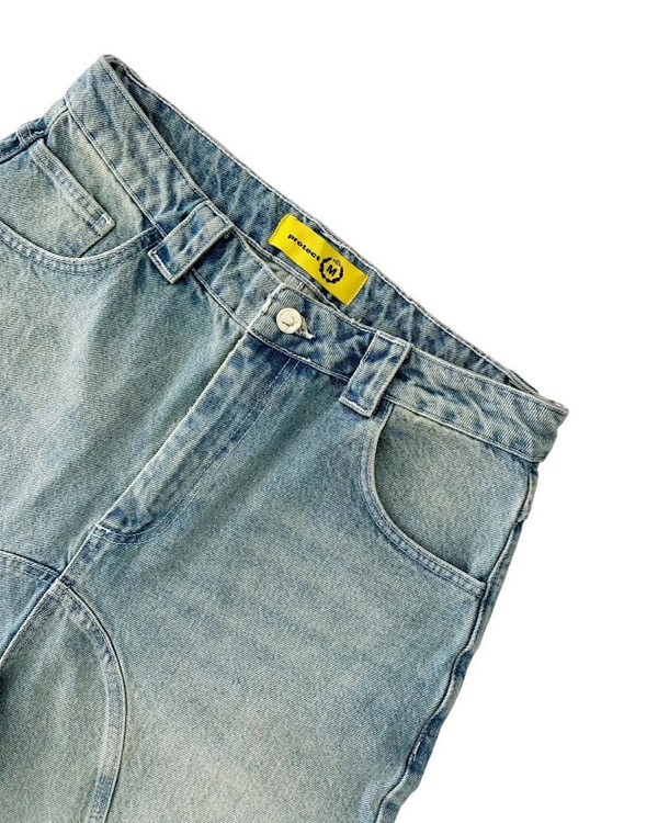 Protect Embroidered Loose Harajuku Washed Denim Shorts-4926