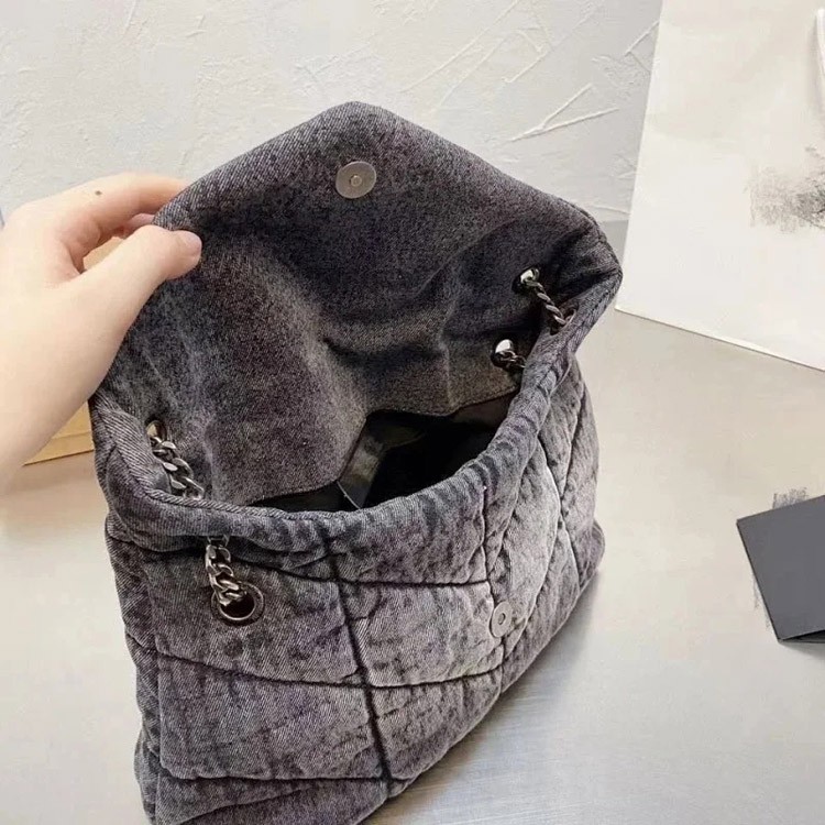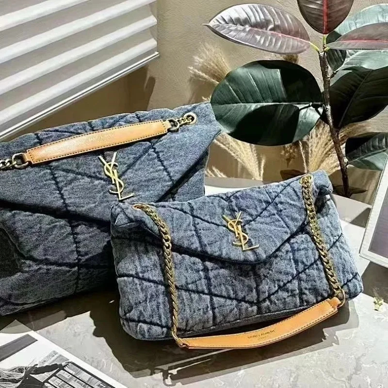 Saint Laurent YSL Denim Shoulder Bag with Metal Hardware and Chain Strap-4632