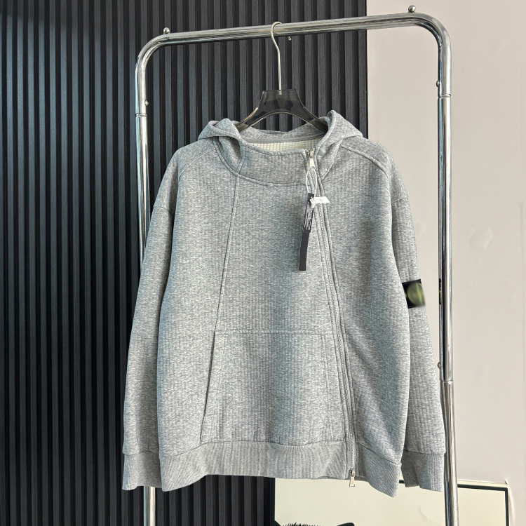 Stone Island classic style cardigan sweatshirt with hood and zipper closure-5264