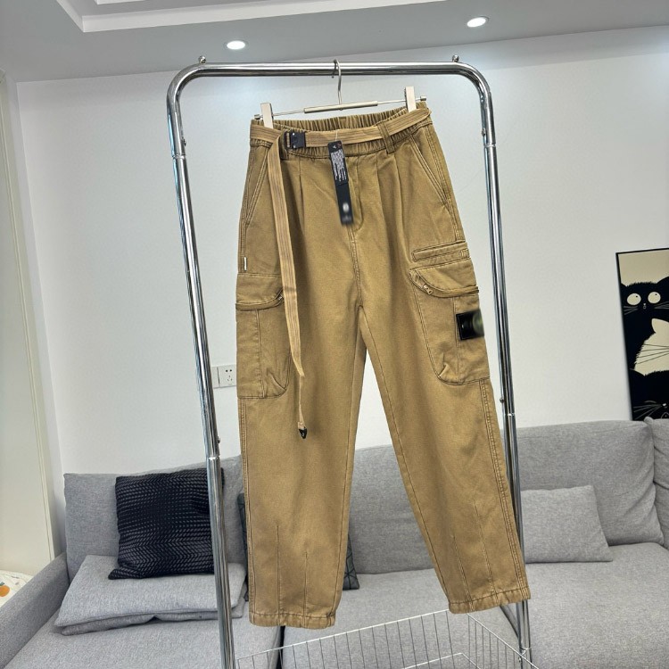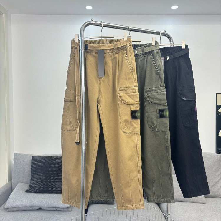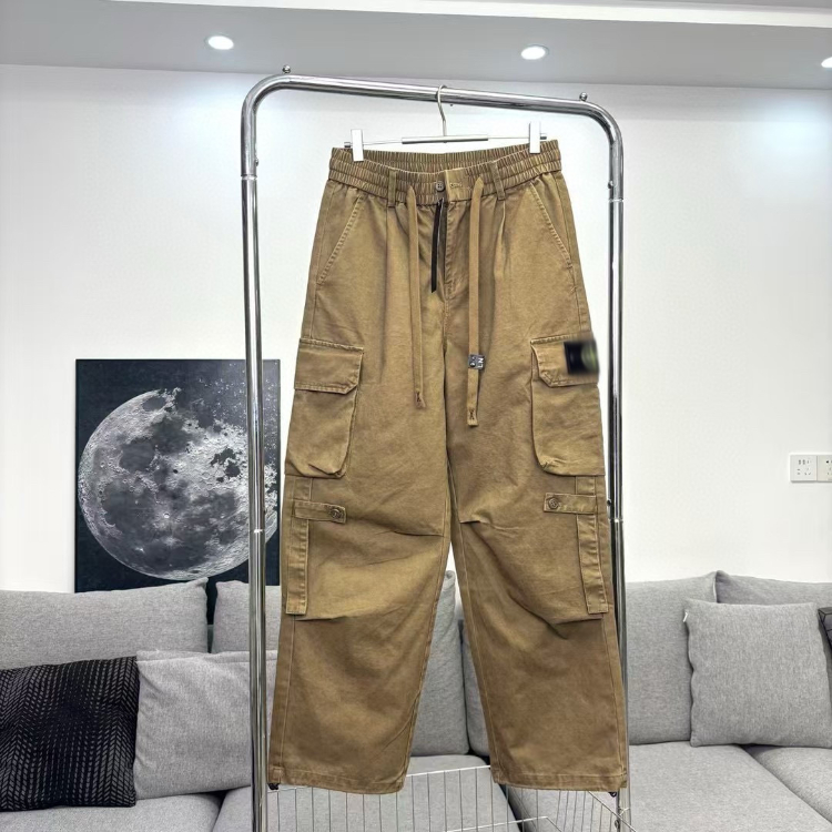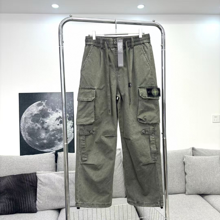 Stone Island Embroidered Loose Straight-Leg Casual Multi-Pocket Cargo Pants-5238