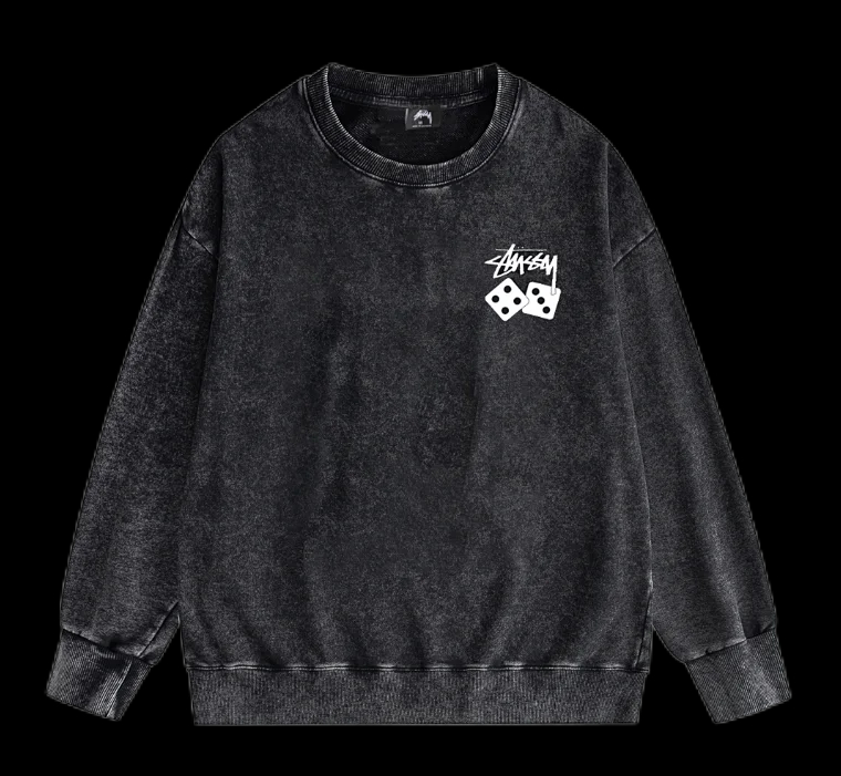 Stüssy round neck T-shirt black ball pattern sweatshirt-4470