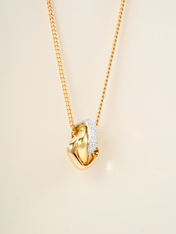 Tiffany cushion-shaped three-color ring diamond necklace-3680