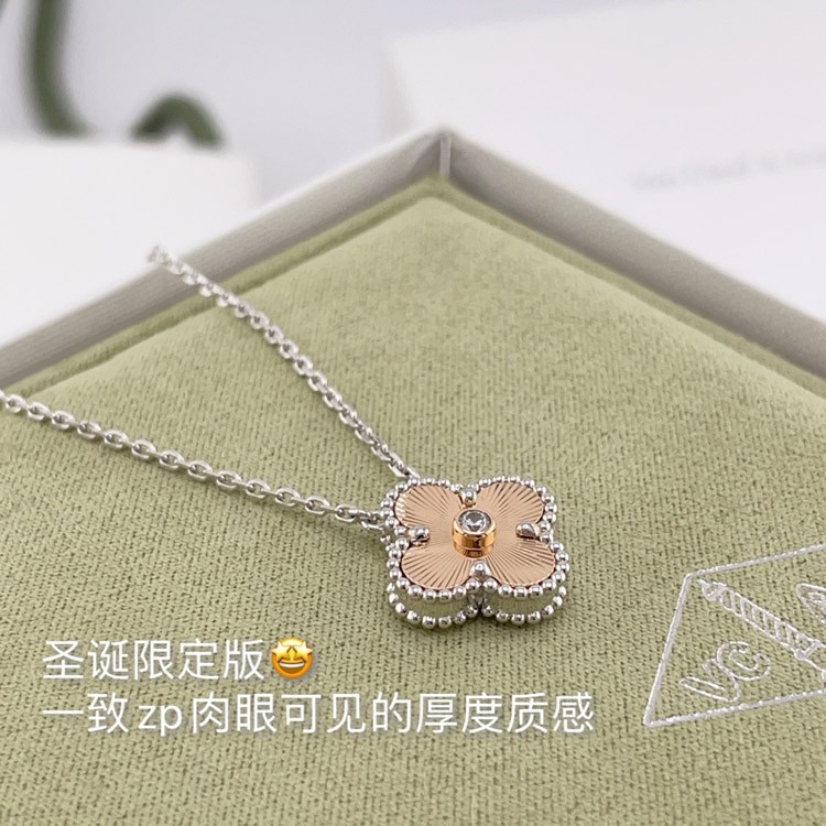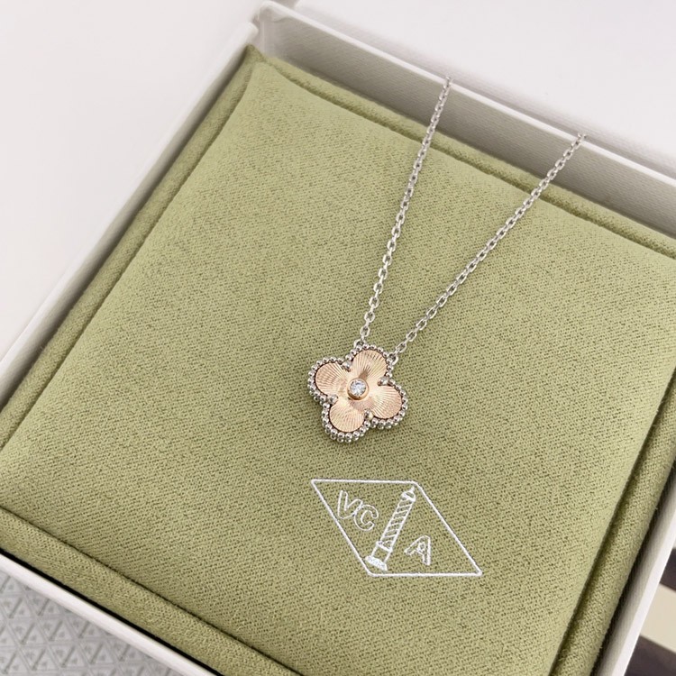 Van Cleef & Arpels white gold and rose gold diamond four-leaf clover necklace-3833