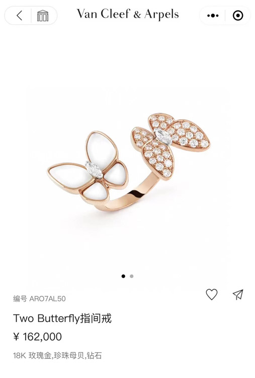 Van Cleef & Arpels White Mother-of-Pearl Diamond Butterfly Rose Gold Ring-3734