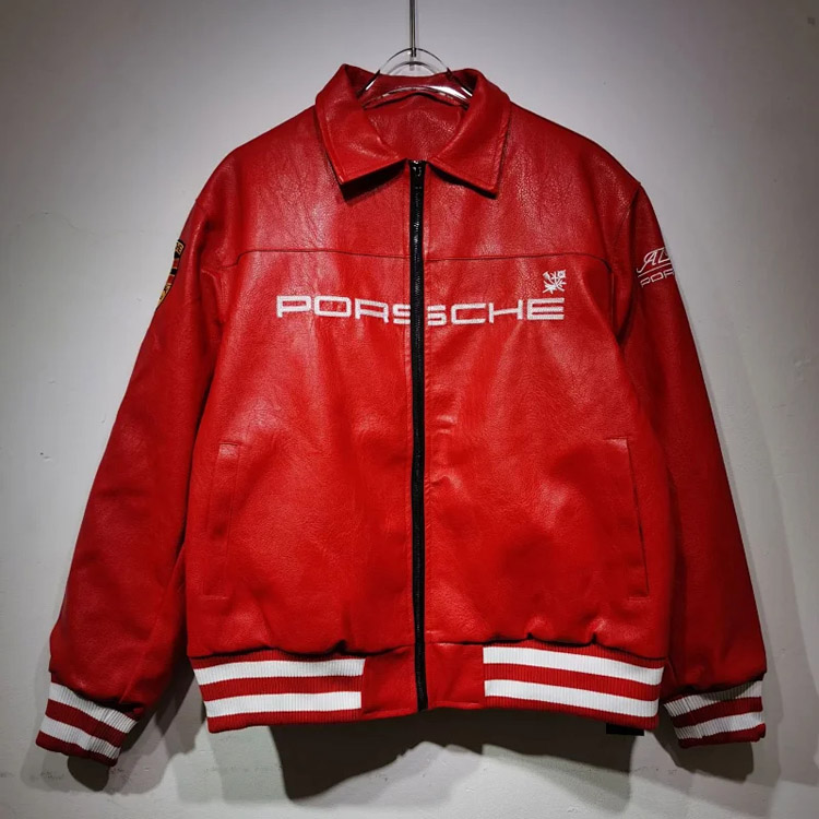 Home > Aime Leon Dore x Porsche Leather Embroidered Zip-Up Ribbed Jacket-5015