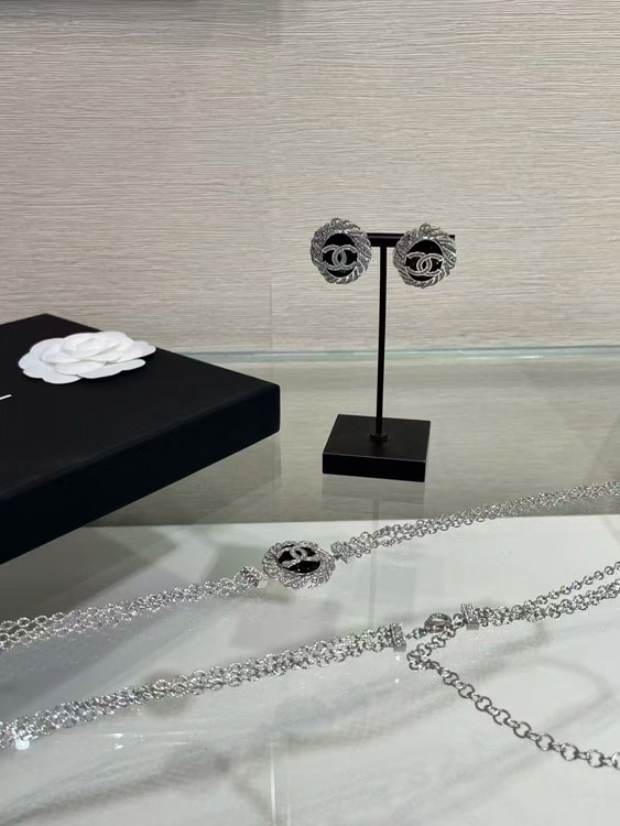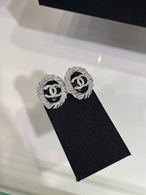 Home > Celine black oval button silver full diamond double C earrings-3900