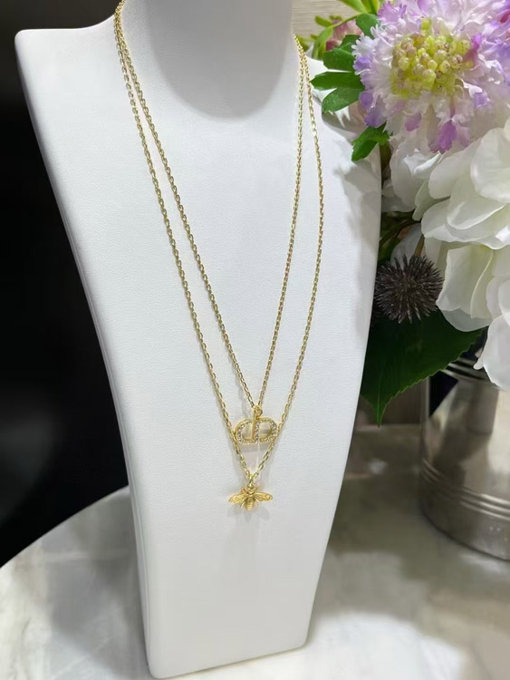 Home > Dior gold diamond bee pendant double necklace-3706
