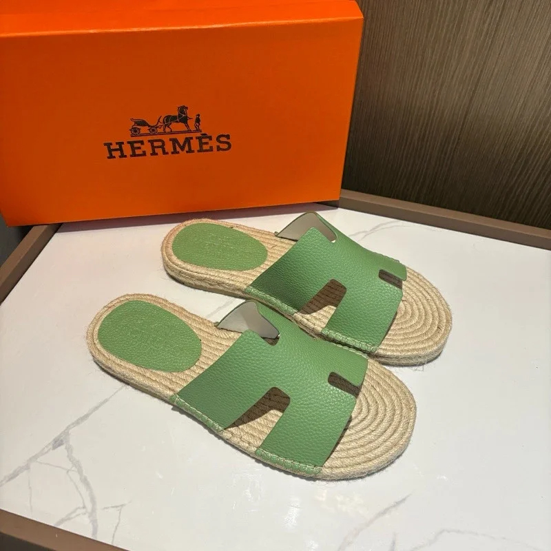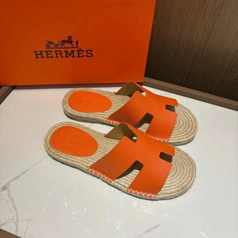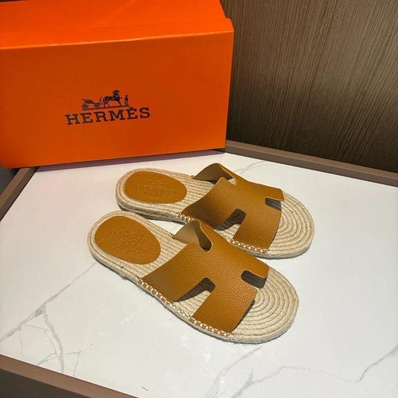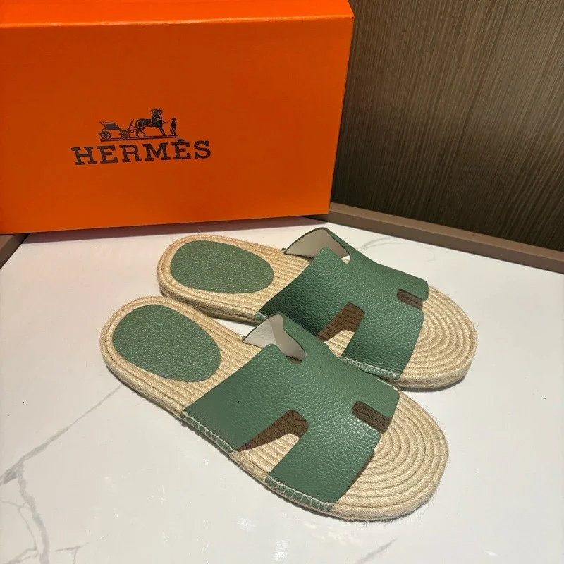 HERMES Antigua Suede Round-Toe Slip-On Sandals-5137