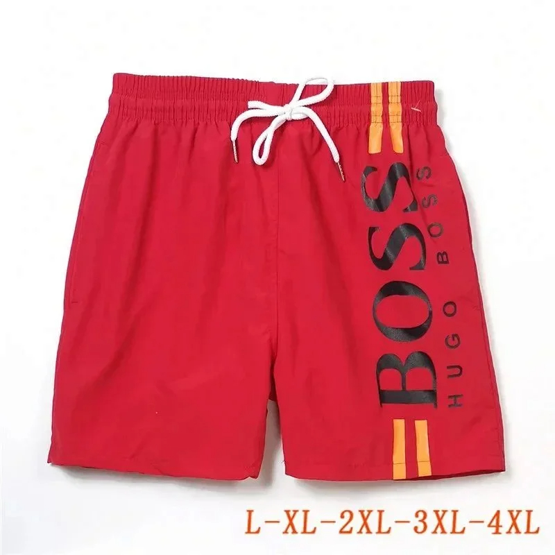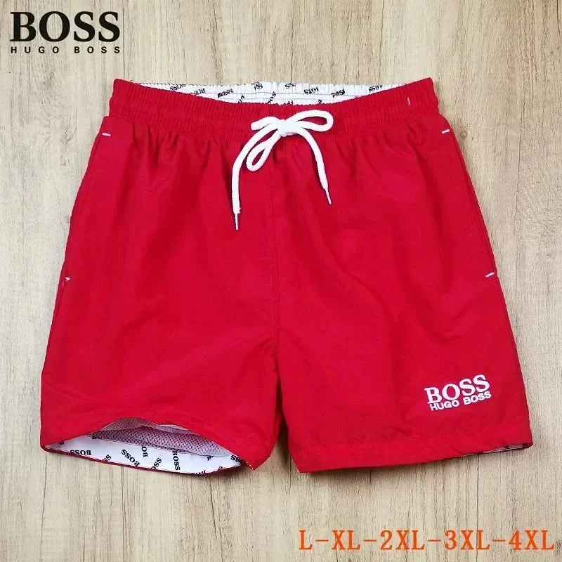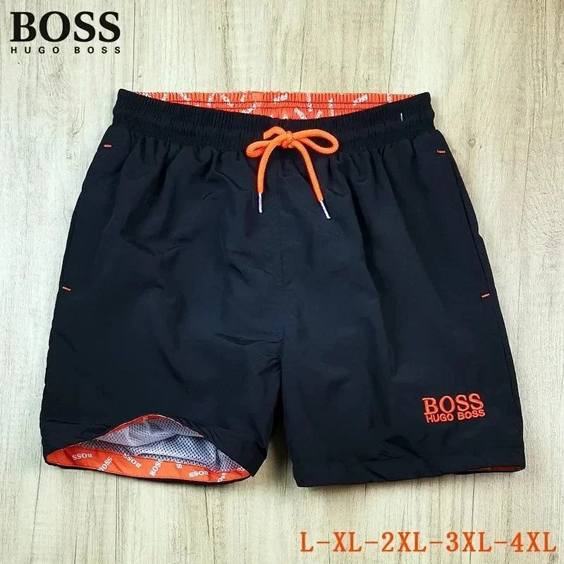 HUGO BOSS logo print quick-dry contrasting color waistband drawstring swim shorts-2881
