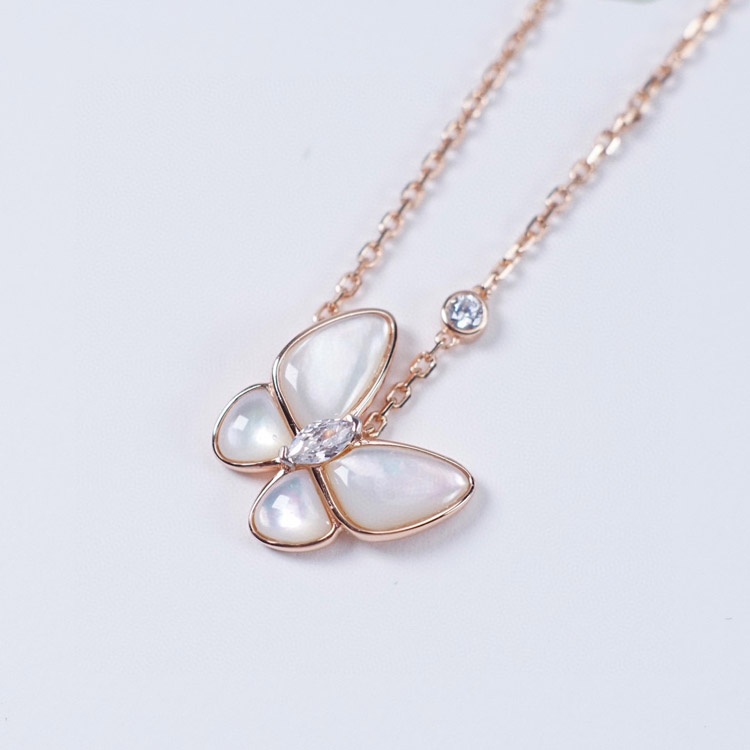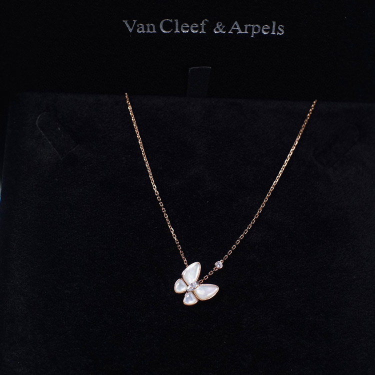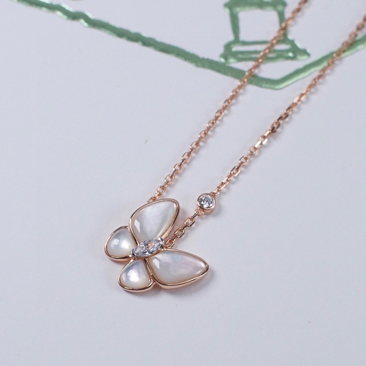 Home > Van Cleef & Arpels Gold and White Mother-of-Pearl Butterfly Necklace-3694